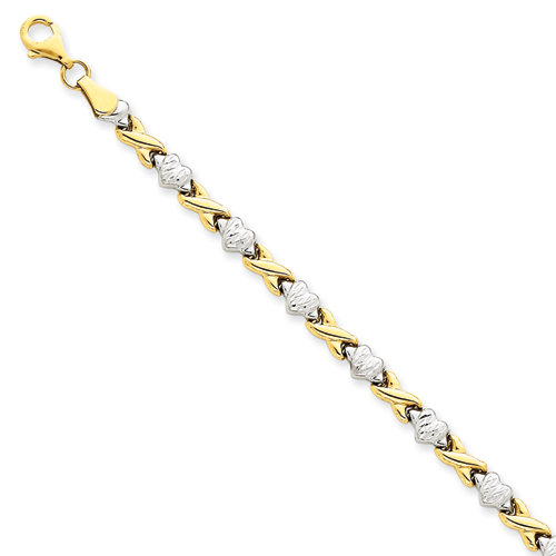 14K Gold & Rhodium Polished Heart & X Bracelet