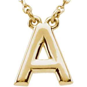 14K A 16"" Yellow Gold Fashion Block Initial Necklace