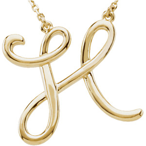 14K H 16"" Yellow Gold Fashion Script Initial Necklace