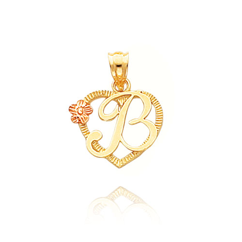 14K Two-Tone Script Initial "B" In Heart Pendant