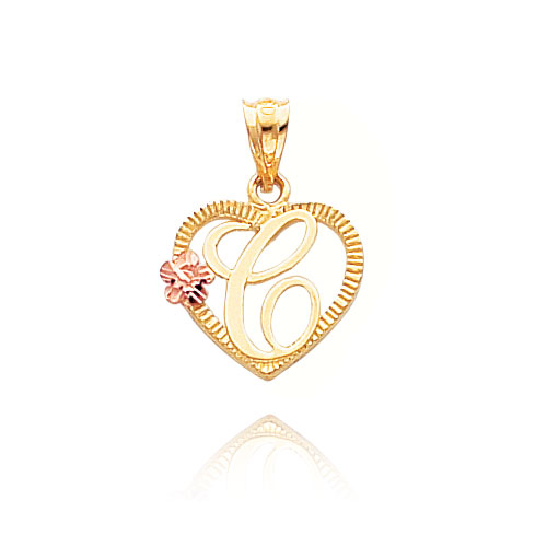14K Two-Tone Script Initial "C" In Heart Pendant
