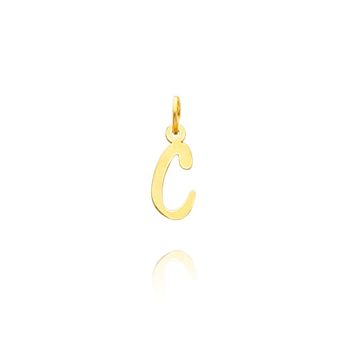 14K Yellow Gold Small Slanted Block Initial "C" Charm