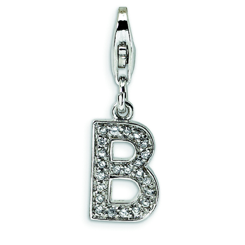 Sterling Silver Cubic Zirconia Letter B With Lobster Clasp Charm