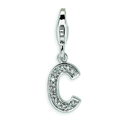 Sterling Silver Cubic Zirconia Letter C With Lobster Clasp Charm