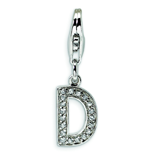 Sterling Silver Cubic Zirconia Letter D With Lobster Clasp Charm