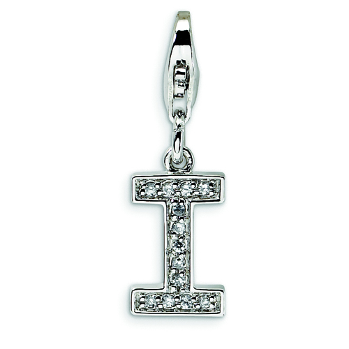 Sterling Silver Cubic Zirconia Letter I With Lobster Clasp Charm