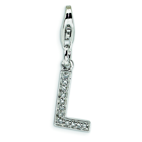 Sterling Silver Cubic Zirconia Letter L With Lobster Clasp Charm