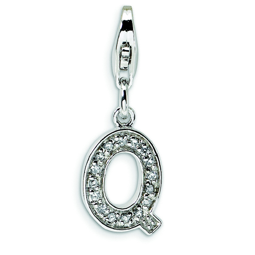 Sterling Silver Cubic Zirconia Letter Q With Lobster Clasp Charm