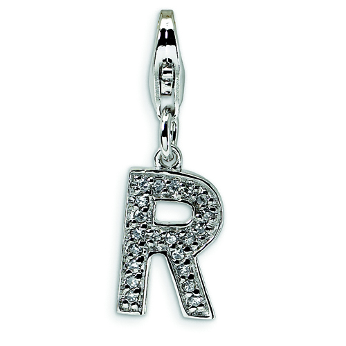 Sterling Silver Cubic Zirconia Letter R With Lobster Clasp Charm