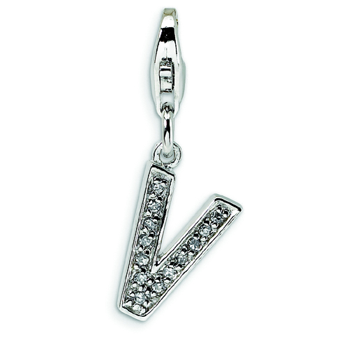 Sterling Silver Cubic Zirconia Letter V With Lobster Clasp Charm