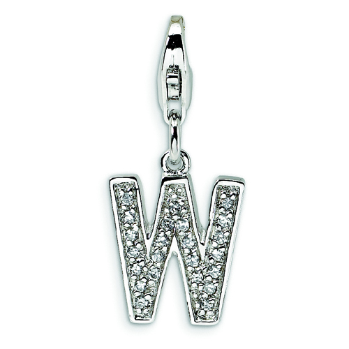Sterling Silver Cubic Zirconia Letter W With Lobster Clasp Charm