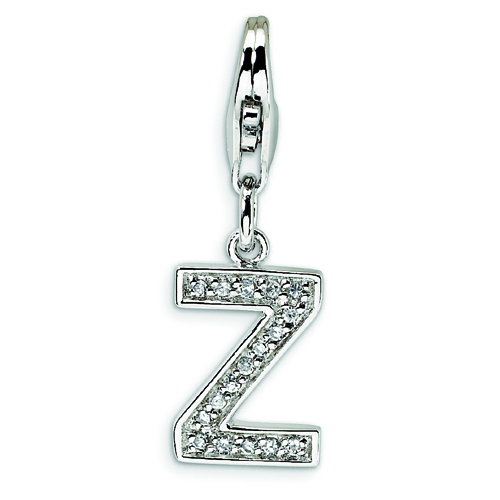 Sterling Silver Cubic Zirconia Letter Z With Lobster Clasp Charm