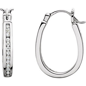 Platinum Diamond White 1/4 Pair Polished Inside-Outside Hoop Earrings