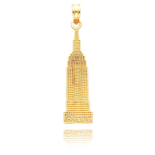 14K Gold Solid New York Skyline On Small Apple Pendant