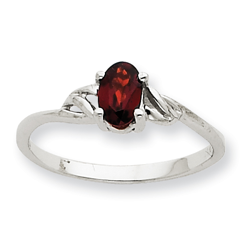 10k White Gold Polished Geniune Garnet Birthstone Ring