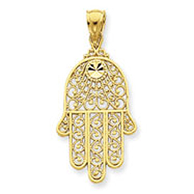 14K Gold Diamond-Cut Filigree Chamseh Pendant