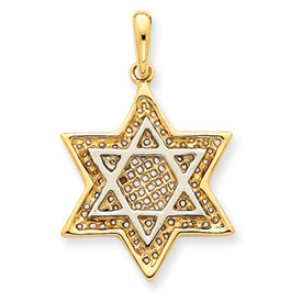 14K Two-Tone Gold Solid Open-Back Meshed Star of David Charm