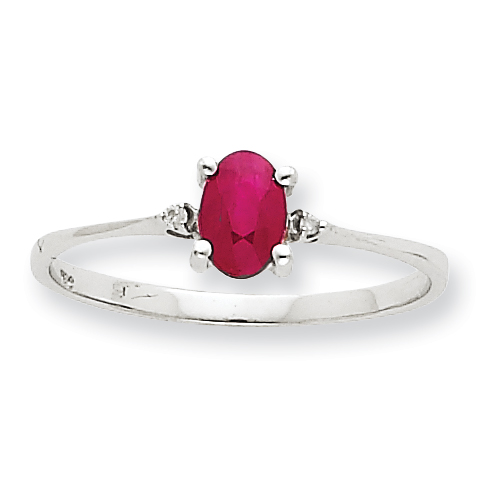 10k White Gold Polished Geniune Diamond & Ruby Birthstone Ring