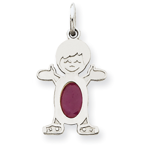 14K White Gold Boy 2.5mm Synthetic July Charm