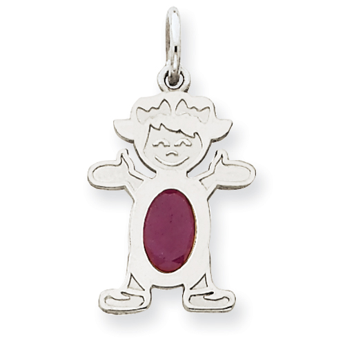 14K White Gold Boy 2.5mm Synthetic July Charm