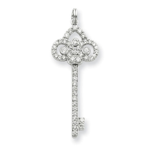 Sterling Silver 1/10 CT TW DIAMOND CROWN KEY PENDANT Diamond Crown Key Pendant