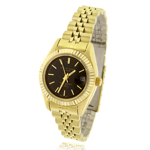 Ladies' Charles Hubert 14K Gold-Plated Classic Black Dial Watch