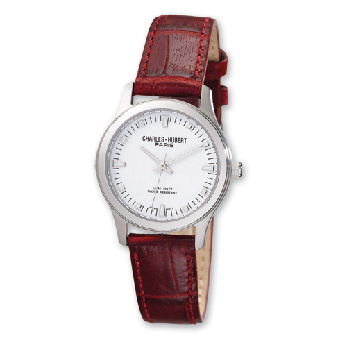 Ladies Charles Hubert Brown Leather Band White Dial Watch ring