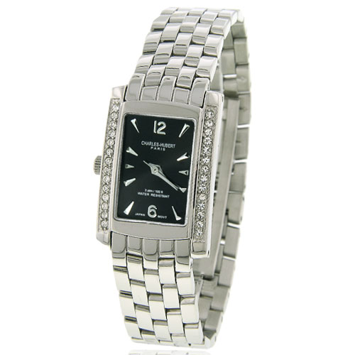 Ladies' Charles Hubert Stainless Steel Swarovski Crystal-Detailed Black Dial Classic Watch