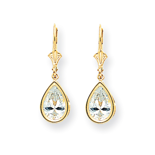 14k 10x7mm Pear Cubic Zirconia leverback earring