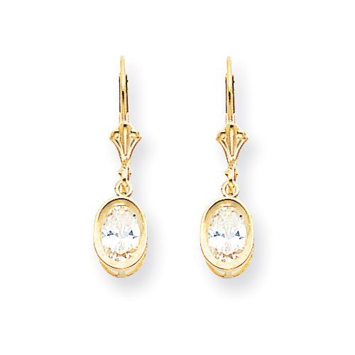 14k 7x5mm Oval Cubic Zirconia leverback earring