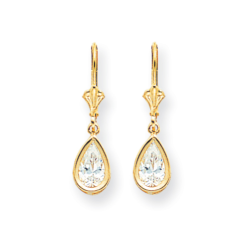 14k 8x5mm Pear Cubic Zirconia leverback earring