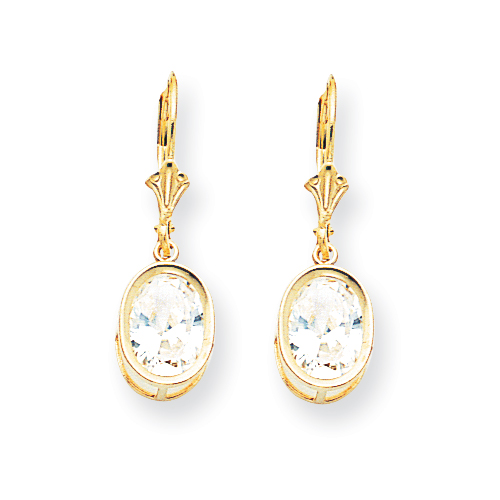 14k 9x7mm Oval Cubic Zirconia leverback earring