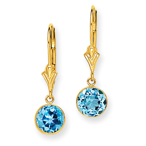 14K Blue Topaz Leverback Earrings