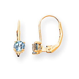14K Gold Round December Blue Topaz Leverback Earrings