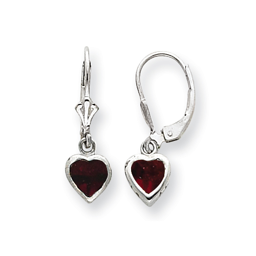 Sterling Silver 5mm Heart Garnet Leverback Earrings