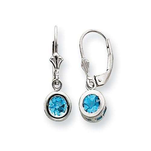 Sterling Silver 5mm Round Blue Topaz Leverback Earrings