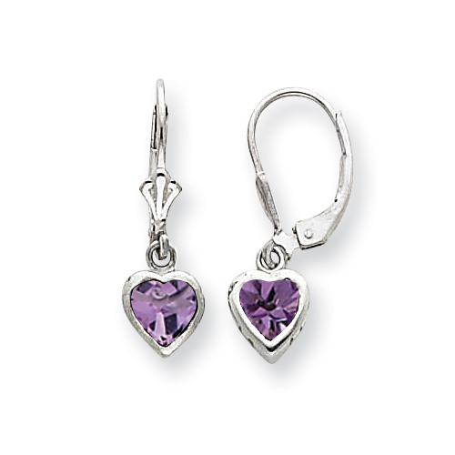 Sterling Silver 6mm Heart Amethyst Leverback Earrings