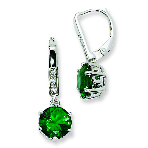 Sterling Silver Simulated Emerald & CZ Leverback Earrings