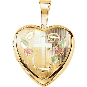 Picture of Gold Plated Sterling 12.50X12.00 MM Polished CROSS HEART LOCKET WITH COLOR