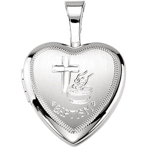 Sterling Silver 12.50X12.00 MM Polished BAPTISM HEART LOCKET