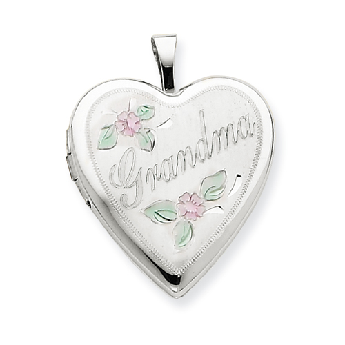 14K 20mm Enamel Flowers Grandma Heart Locket