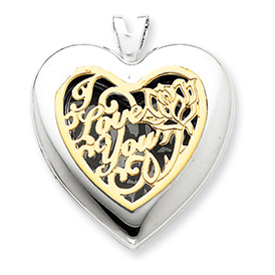 14K Gold & Sterling Silver Heart With I Love You Locket