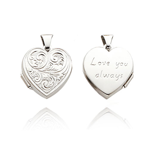 14K White Gold Reversible Heart-Shaped "Love You Always" Locket