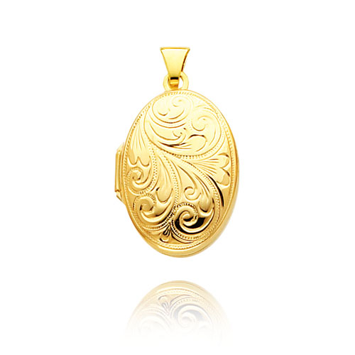 14K Yellow Gold Domed Oval-Shaped Scroll Design Locket