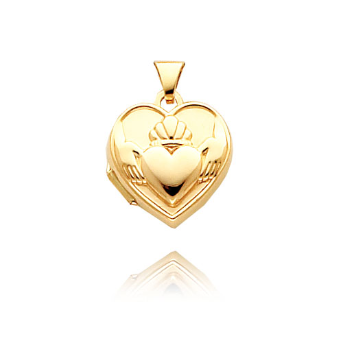 14K Yellow Gold Heart-Shaped Claddagh Locket