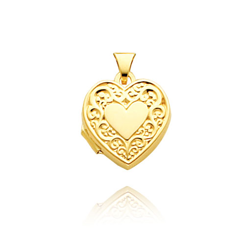 14K Yellow Gold Heart-Shaped Scroll Trim Locket