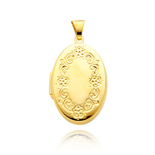 14K Yellow Gold Large Oval-Shaped Floral Trim Locket
