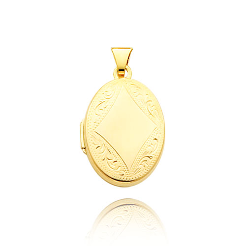 14K Yellow Gold Oval-Shaped Center Diamond Shape Locket