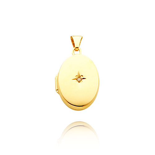 14K Yellow Gold Oval-Shaped Diamond Locket