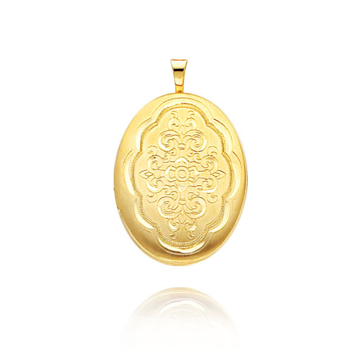 14K Yellow Gold Oval-Shaped Fancy Diamond-Cut Locket